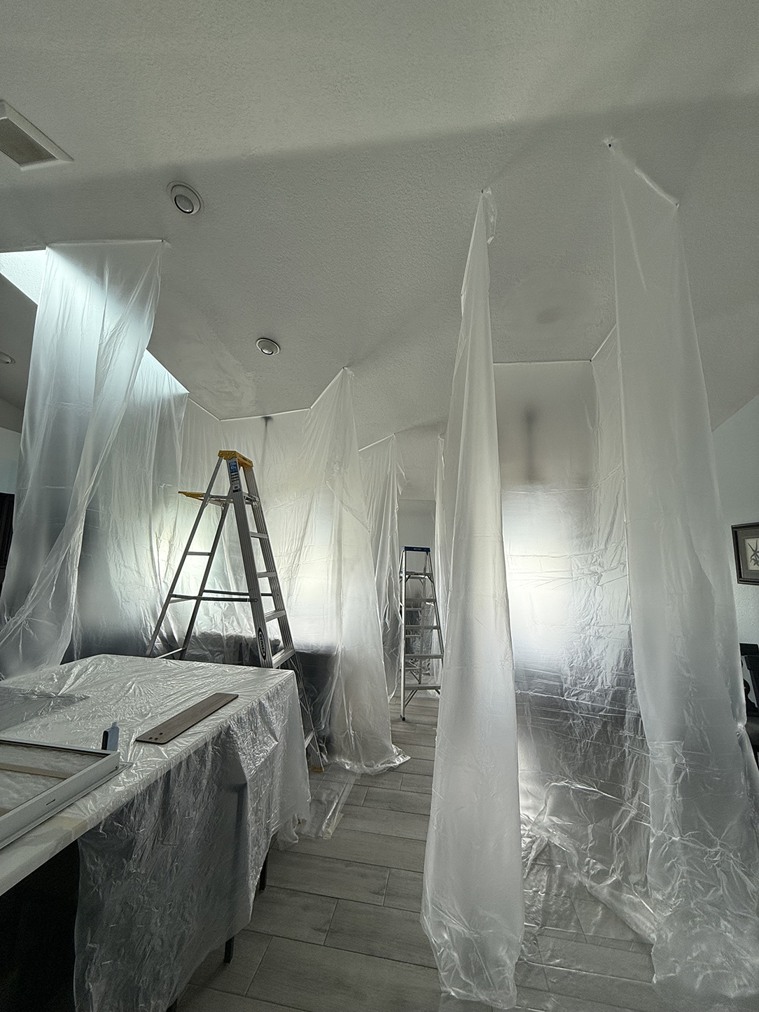 We carefully shred the old portion of the old popcorn ceiling